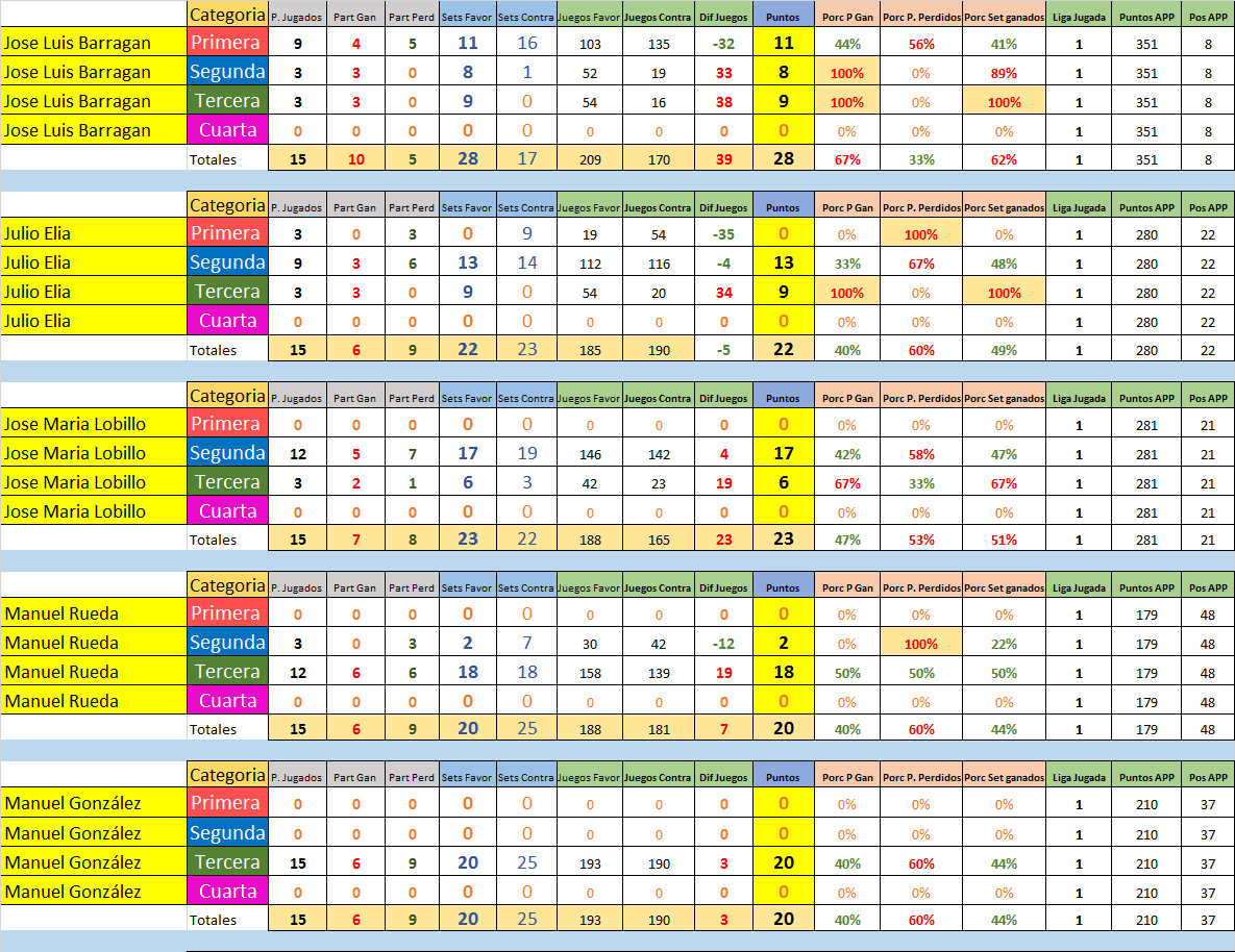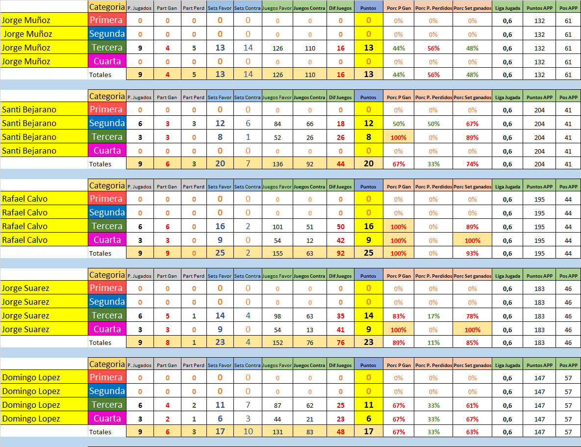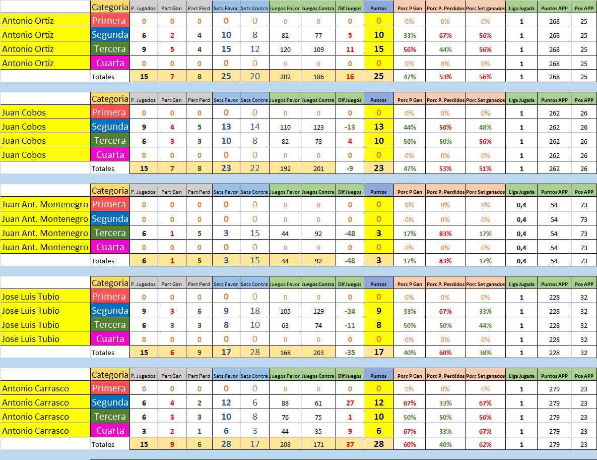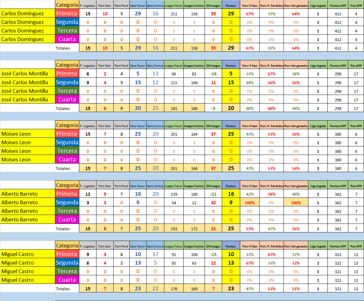 Estas son las Estadísticas por jugador y división de todos los que participaron en la Temporada 3 2016/2017.