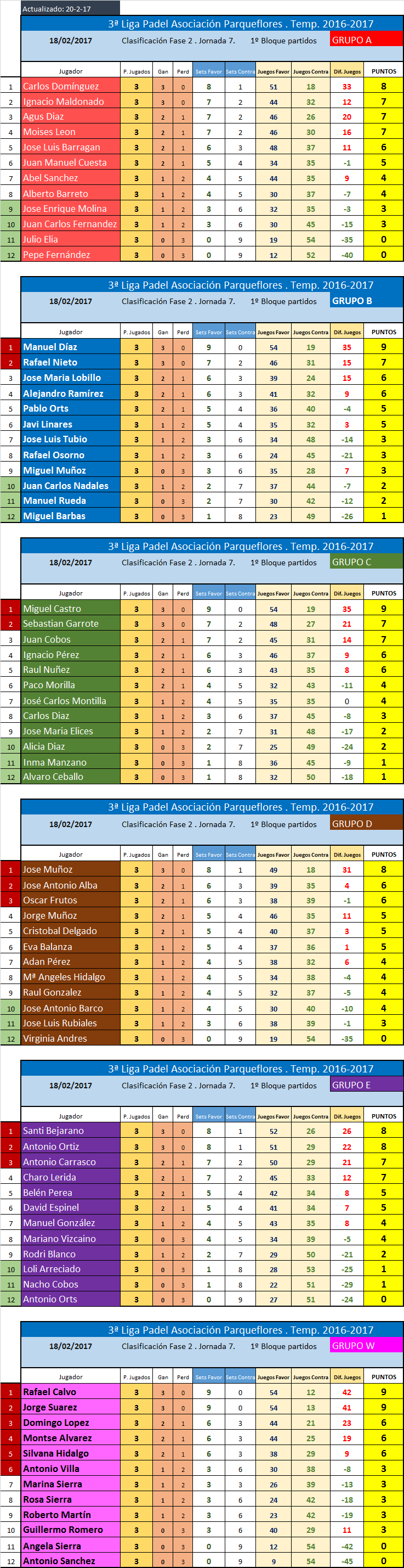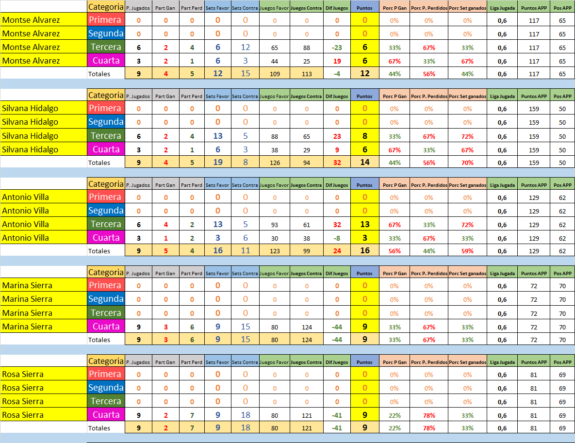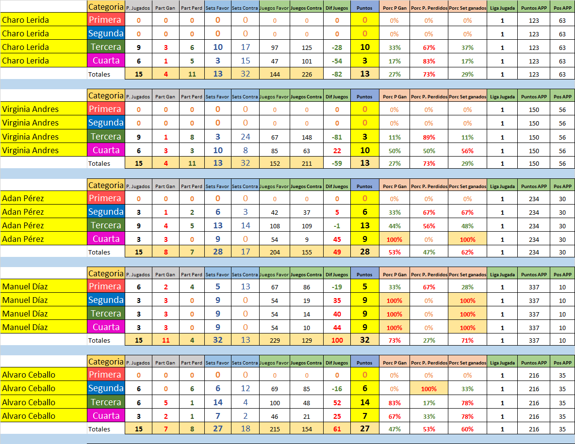 Estas son las Estadísticas por jugador y división de todos los que participaron en la Temporada 3 2016/2017.