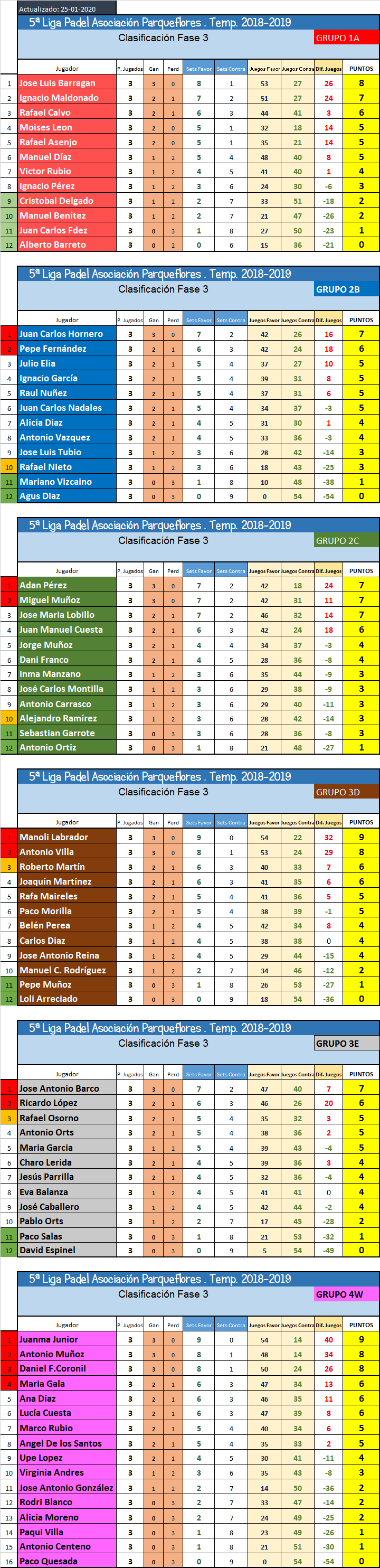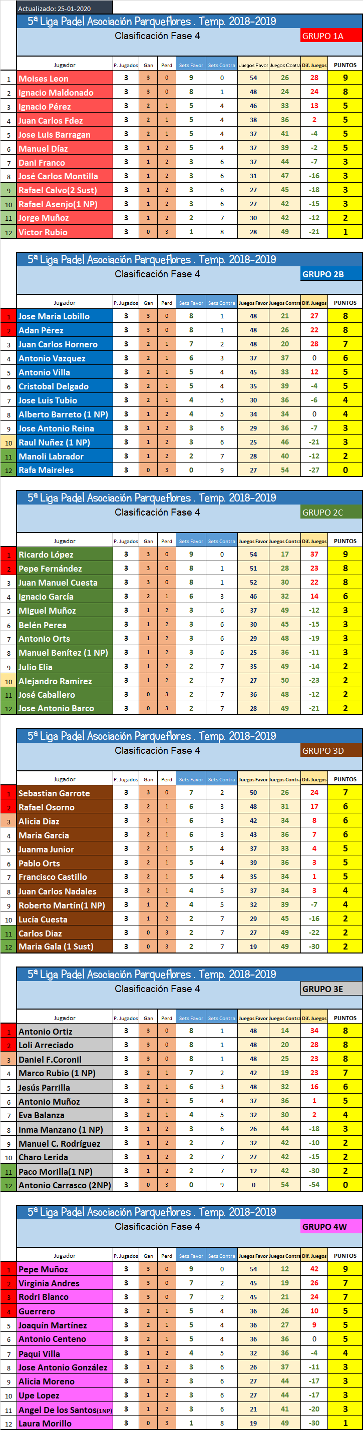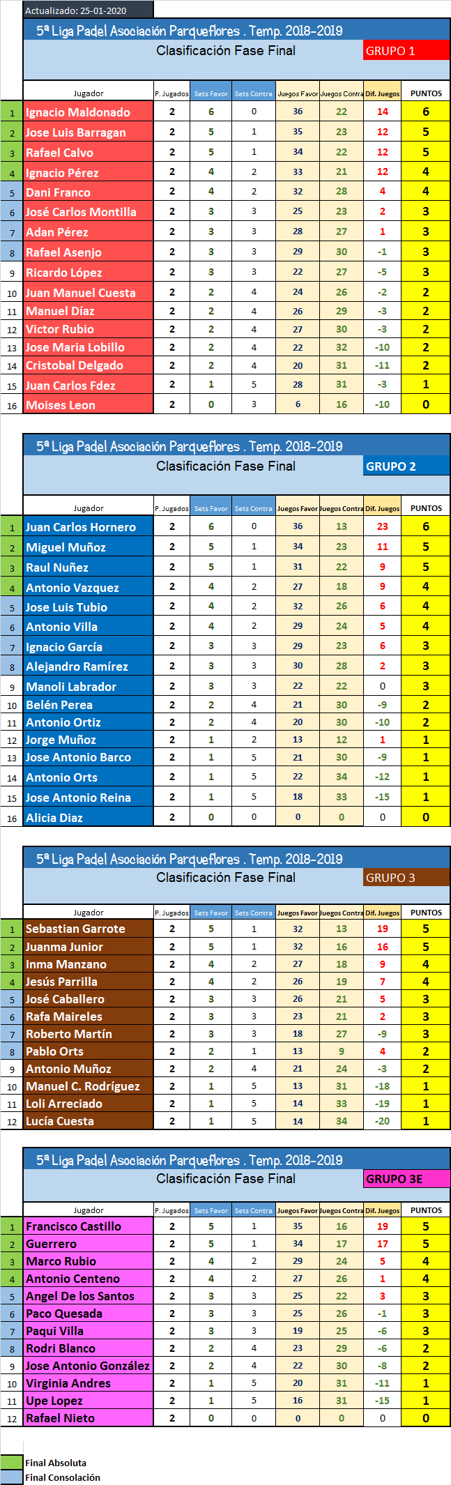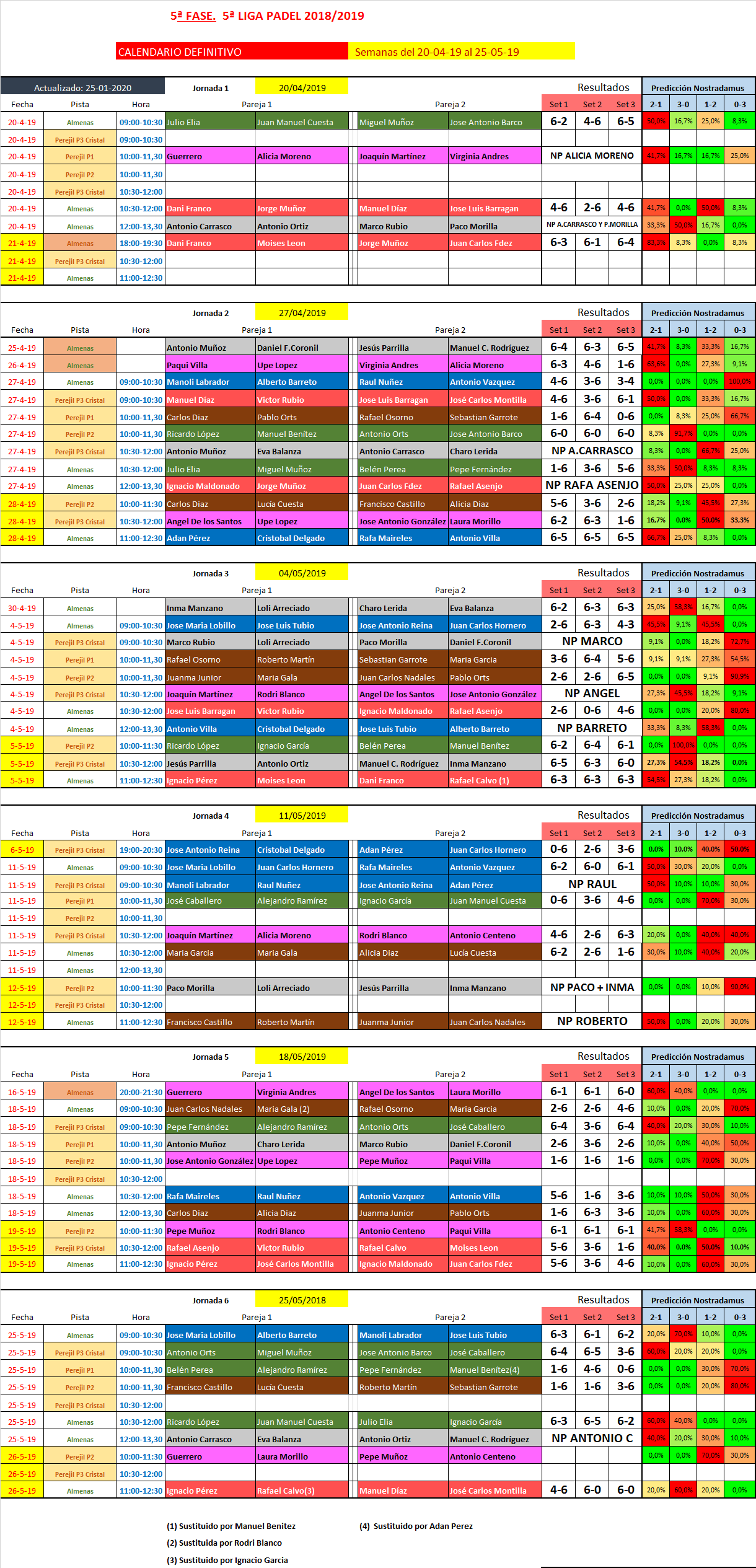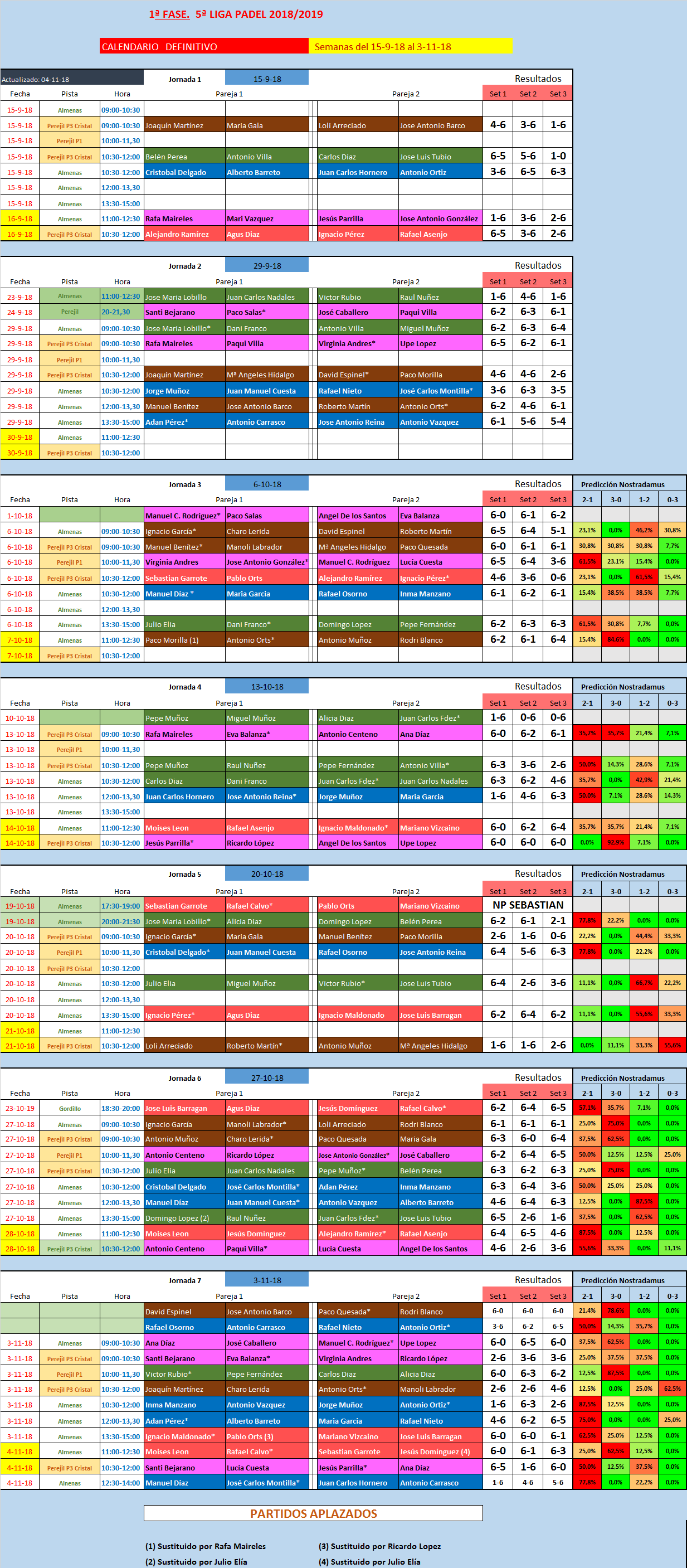 Y estos son los resultados y clasificaciones , de los cuales están basadas todas las estadísticas de esta Temporada 5 2018/19: