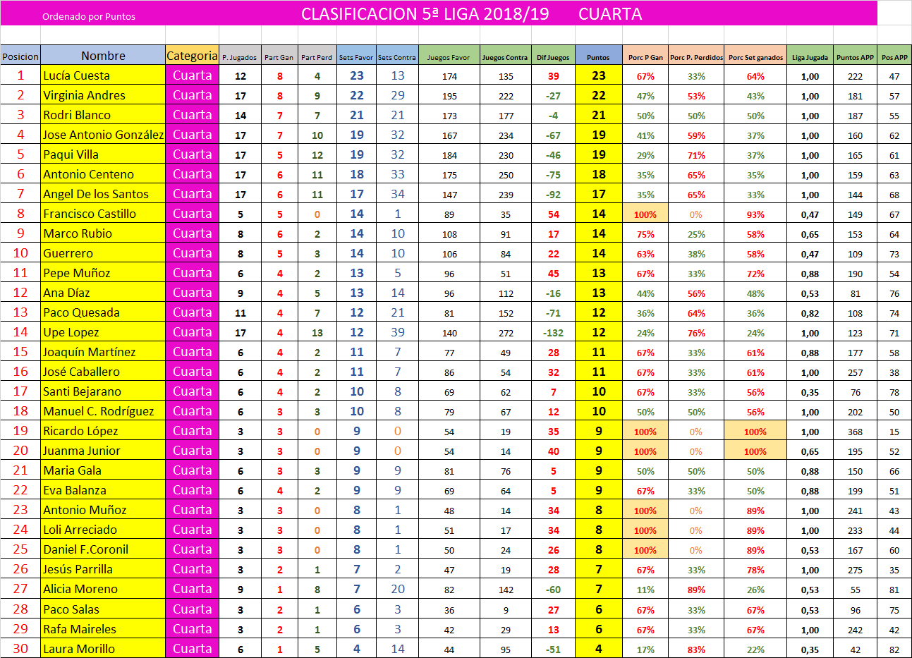 Esta es la Clasificación Final de Puntos APP de esta Temporada 5: