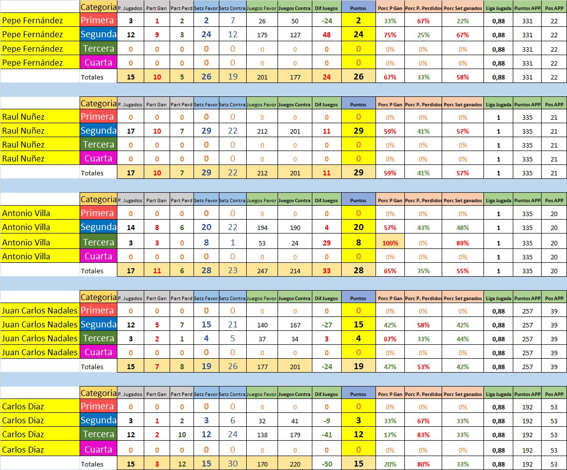 Estas son las Estadísticas por jugador y división de todos los que participaron en la Temporada 5 2018/2019.